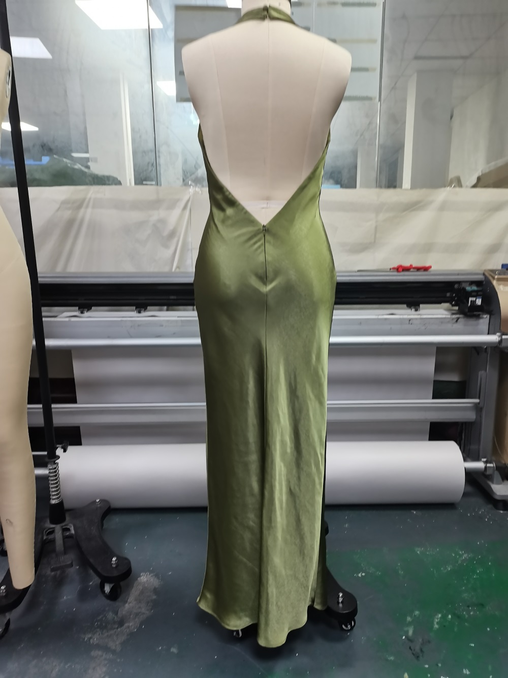 Olive green maxi satin dress